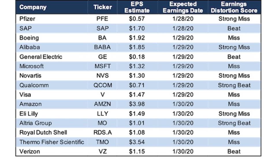 Earnings Distortion Scorecard Week Of 1 27 20 1 31 20