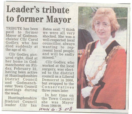 Tribute To Former Mayor Carol Godley Source Huntingdon Weekly