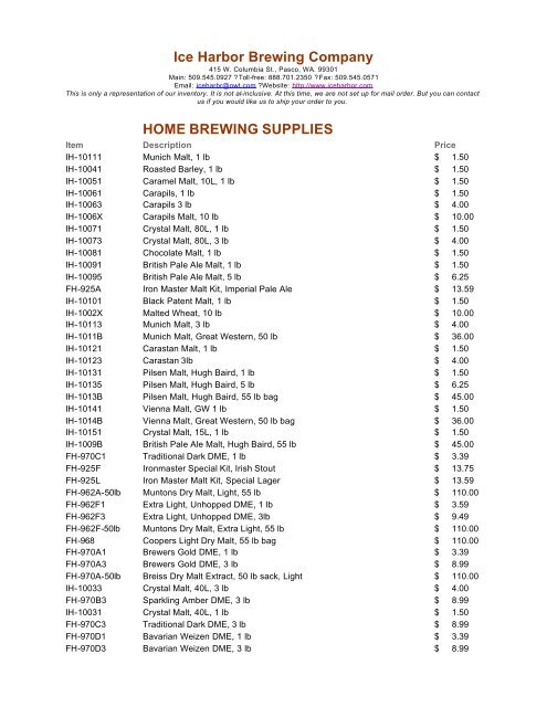Ice Harbor Brewing Company Home Brewing Supplies